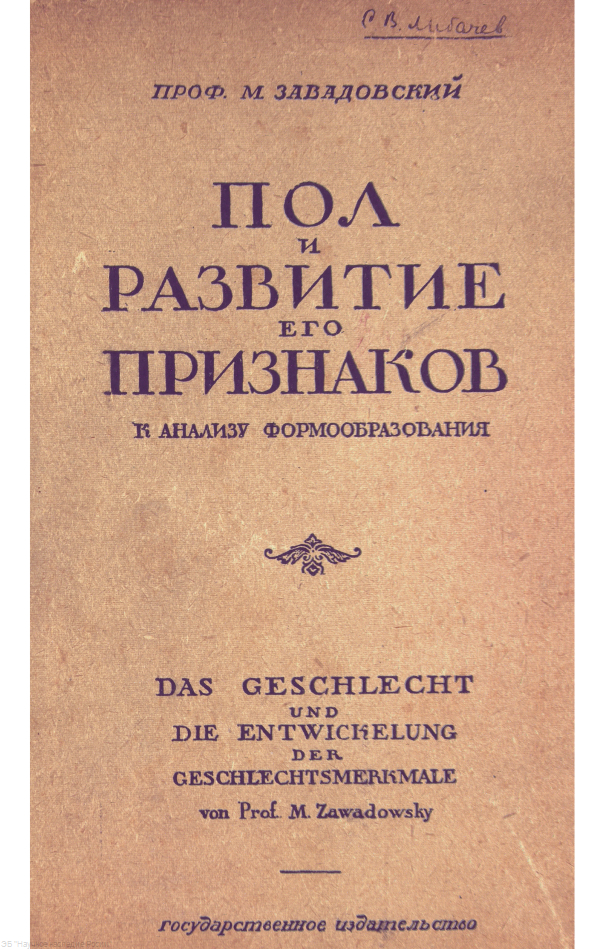 Завадовский, М.М. Пол и развитие его признаков : К анализу формообразования у животных. - М. : Госиздат, 1922. - 255 с., 20 цв. ил. : 126 рис.